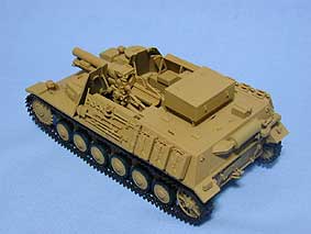 、アランホビーのバイソン2(こんなニックネームでしたっけ?)こと15cm33式重歩兵砲搭載2号戦車車体(ジャーマンタンクス調べ)が手に入りました。前回セモベンテL40を作ると書きましたが、これが手にははいったので、というか、送料かけて速攻で手に入れて、もったいないので急遽製作に入る事にしました。キットの出来ですが、結論から言うとなかなか面白いキットですが、基本的なところで問題ありといった所です。車体下部と上部の長さが合わなかったり、上部転輪、誘導輪の幅がキャタピラガイドの幅よりあったり、綿密な仮組無しにはまともに組めなかったりしますが(実は私やってしまって泣きを見ました)、なんかワクワクさせる楽しいキットです。作れる人にはお勧めです。