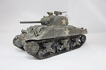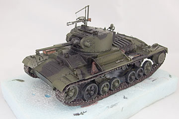 基本塗装と墨入れを行ったところです。フリウルのキャタピラの金属色を活かす方法も試しているところです。いくつかパーツを無くしちゃっているので補修が残っているので静岡が終わるまでここで作業は中断します。 |