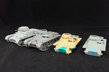 アカデミーから1号戦車が発売されましたので、仮組みしてみました。(黄色いやつ)比較にタコムとドラゴンのキットももってきましたら、阿部さんがイタレリ版を持ってきてくれていました。おかげでいろいろ比較ができて面白かったです。 |