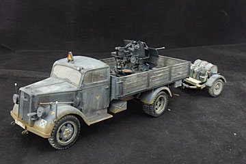 最近、AFVの会に向けて牽引車+砲シリーズ?を作っていますが、その第3弾ということで、今回はドイツものです。北アフリカの写真でカッコイイ写真があったのでそれをモデルにしています。現在、幌を自作中ですが、しわに苦戦中です。 |