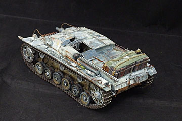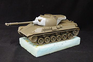 塗装をどうするか悩んだ末、冬期迷彩にすることにしました。ので基本塗装をベースにいろいろな色を混ぜた色を乗せて、剥がしたときに表情がでるようにして、シリコンバリアーを塗ったところです。冬期迷彩はクレオスのウエザリングカラーの水性のヤツを試してみるつもりです。 |
