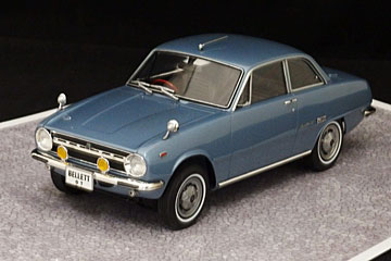 Hasegawa製ベレットの3作目、前期型丸目2灯のベレット。GTを名のったのは日本初。テンロク(1.6L)エンジンを載せたスポーティカーが若者の心を鷲掴みにしたことが、その後の86レビンにつながっていった。 |