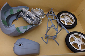 61式って意外と大柄なんだなーと思いながら作っています。別売りエッチングパーツはエンジンルーバーには必須ですが、それ以外を使うか使わないか、強度面も含めて熟慮中って感じです。 |