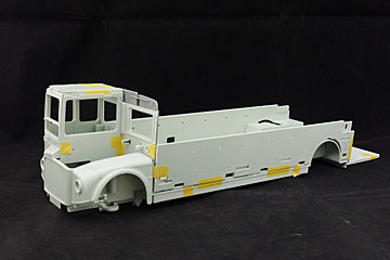 完成を目の前にしてBピラーと窓枠の塗装のために全体をマスキングしたところそのマスキングテープの跡があちこちに出てしまいました。新しいボディをカスタマサービスに注文したところ在庫切れで2025年2月入荷予定とのこと。完成はそれまでおあずけです。 |