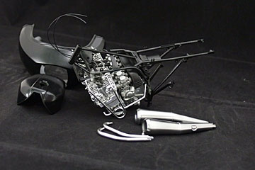 結局、一部パーツのメッキ剥がしをして再塗装。意外に楽しくて塗装も上手く出来たので一安心。ようやくフレームに各種パーツを組み込めます。AFVから遠ざかってるな…。 |