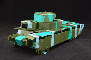 せっかくのトーションバーサスを活かすため誘導輪も可動にしました。連結履帯の強度が心配なので最後まで残せるかは半信半疑。 |