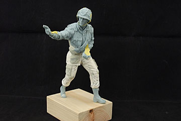 キットはタミヤの90にテトラモデルのエッチングパーツとカモフラージュネットを使いました、フィギュアはエポパテ盛って防寒外被っぽくしてみました。 |