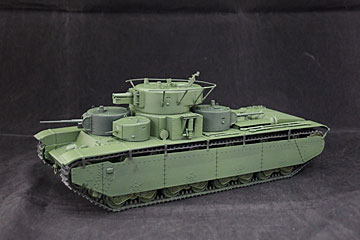 工作がほぼ終了で塗装に入りましたが、塗料が切れてしまったので、まだムラのある状態です。やはり重戦車はデカかったです。塗ると手を入れたところがわからなくなっちゃいますが、もったいないので塗装前に撮影しています。 |