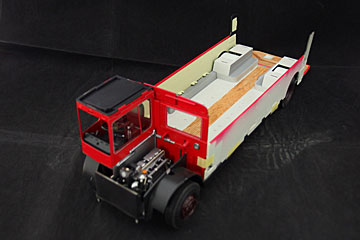 この後、座席・階段⇒天井・2階の床・座席⇒天井・屋根と上に上にと作業を進めて最後に外板を貼ったらロンドンバスの出来上がりです。 |