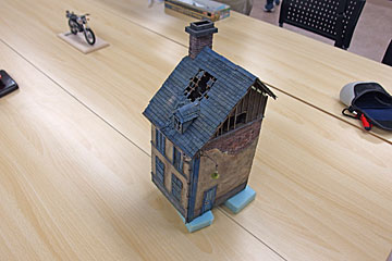 キット?はアマゾンで購入した、GUOOLの建物キットです、ほぼスチロール板と厚紙です。8月の例会までにはジオラマにしたいと思います。 |