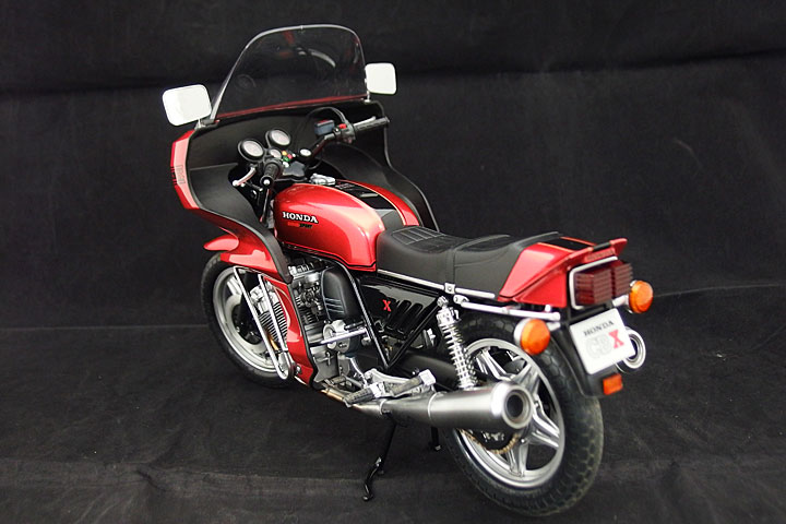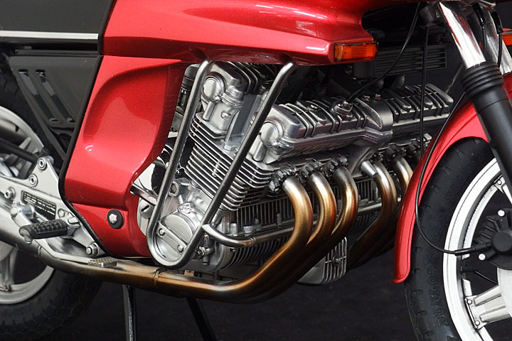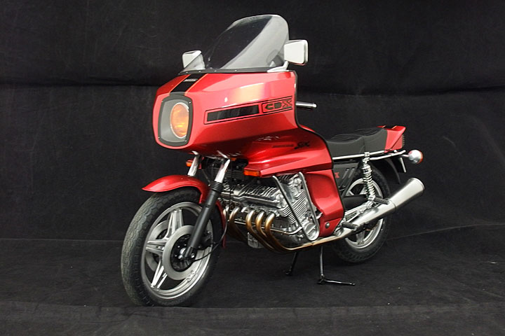 何とか完成まで漕ぎ着けた事に安堵。まともな艶有り模型、このスケールのバイク模型、生まれて初めての経験ばかり。艶消し作品の棚も、これで少し明るくなりそう。