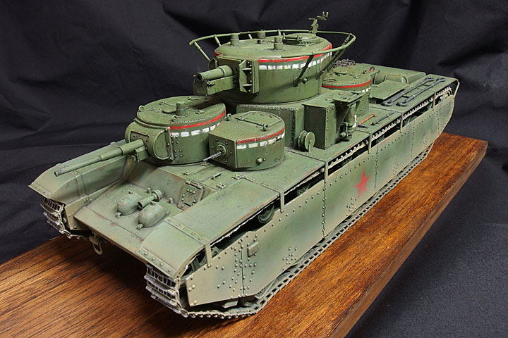 1930年代前半のソ連最強の戦車、T-35です。クラブの制作テーマ「景気のいいデカいやつ」でまず思いついた車両です。どう見ても強そうですが、WW2では装甲が薄くてすぐにやられてしまいました。