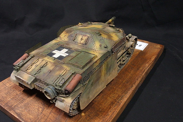 数年前に塗装前まで製作していた、ハンガリーの自走砲スリーニUをやっと完成させました。キットはなかなかきびしい出来で、足回りとエッチングのシュルツェンにはかなり苦労させられました。また、キャタピラは戦闘室まわりにも取り付けたかったので、足回りにはフリウルのものを使用し、戦闘室にキットのものをまわしました。