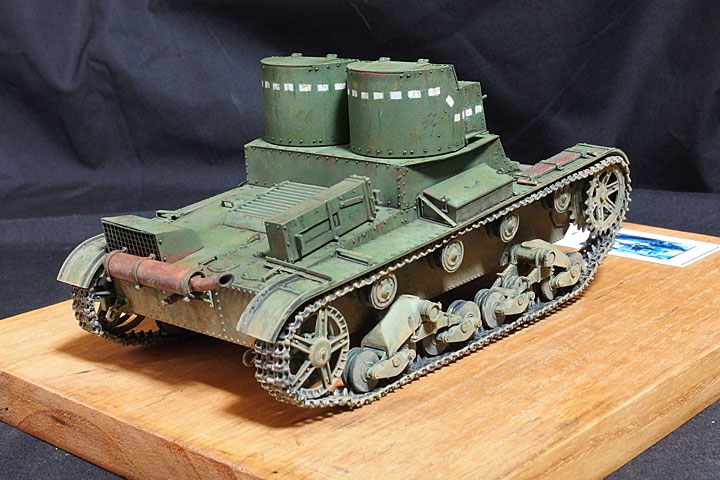 多砲塔戦車の末っ子T-26です。T−26はビッカース6t戦車を参考に量産されましたが、この多砲塔型は考え方としてはイギリスのマーク戦車の雌型といったところでしょうか。だたし砲塔は後部が高く改良されていますが、これは他の戦車ではあまり見られませんね。
