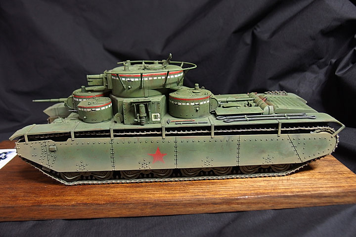 1930年代前半のソ連最強の戦車、T-35です。クラブの制作テーマ「景気のいいデカいやつ」でまず思いついた車両です。どう見ても強そうですが、WW2では装甲が薄くてすぐにやられてしまいました。